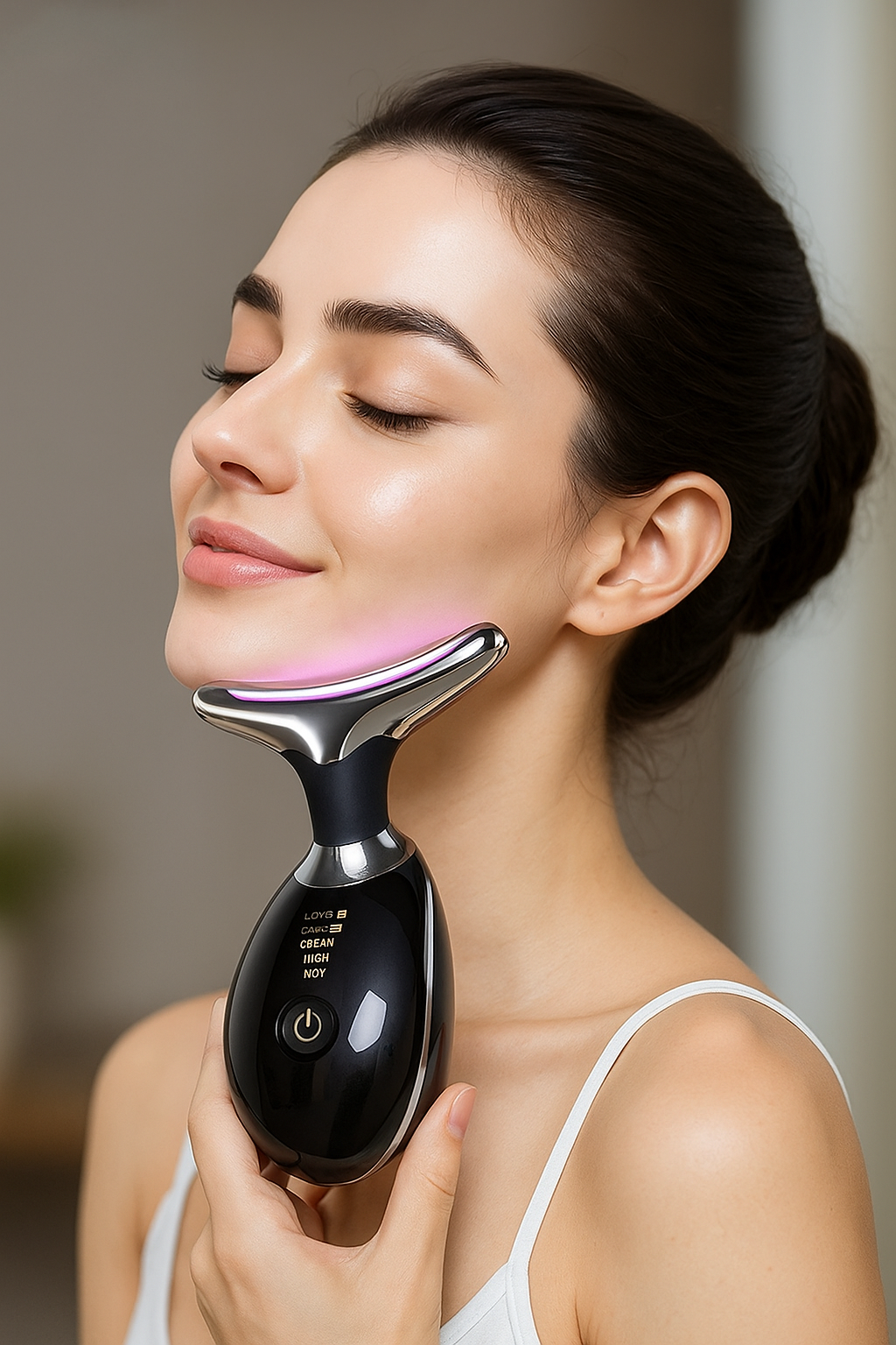 Este dispositivo de diseño ergonómico se adapta perfectamente a los contornos de tu rostro y cuello, combinando tres terapias potentes para ofrecerte resultados visibles desde las primeras semanas.